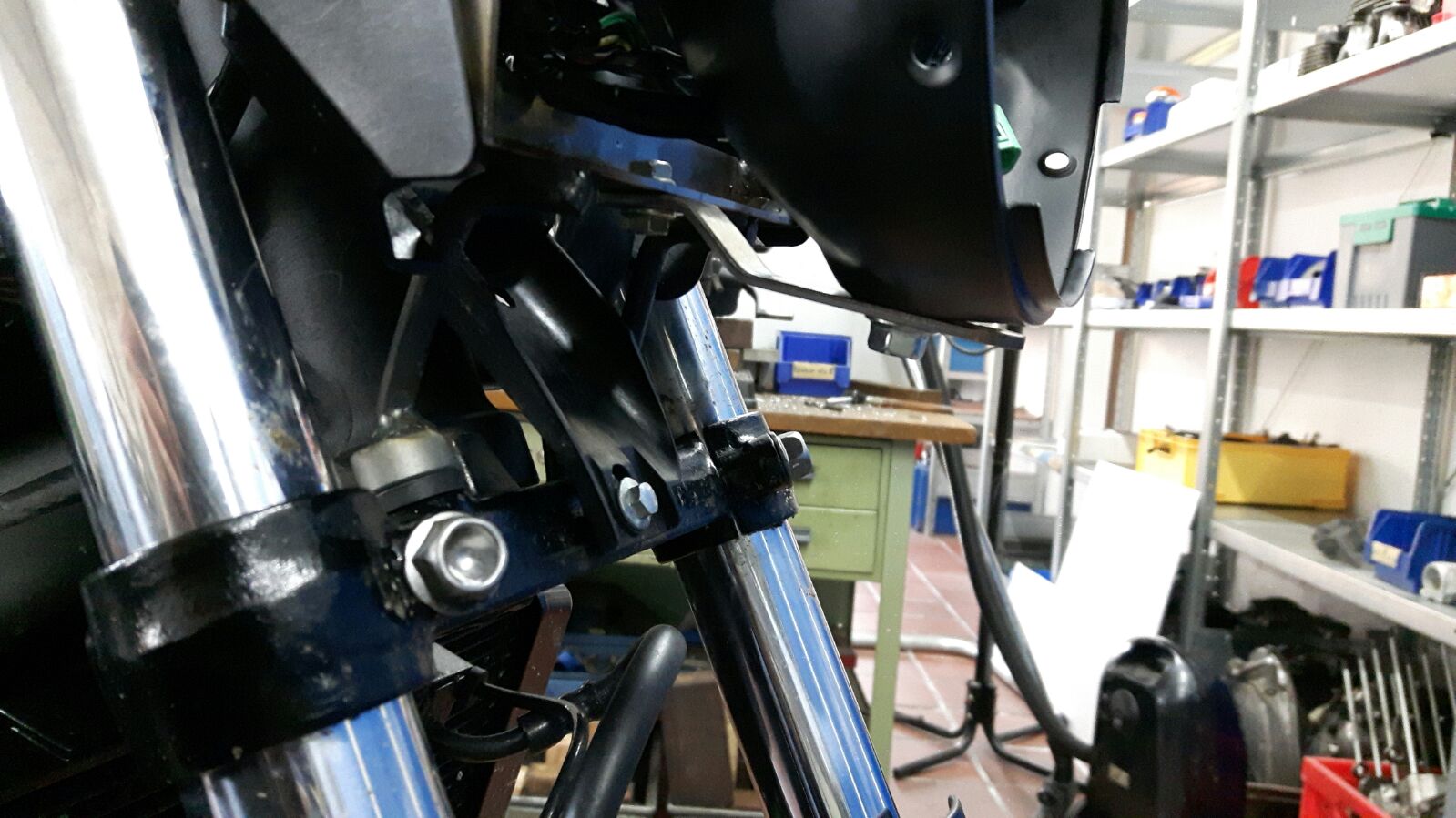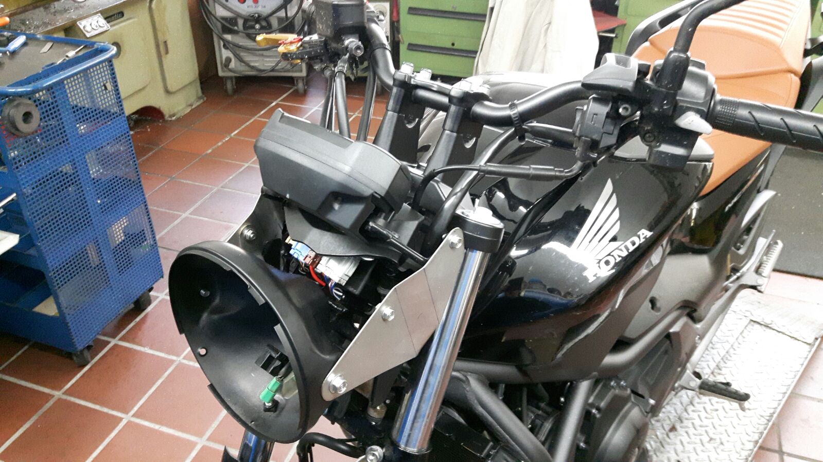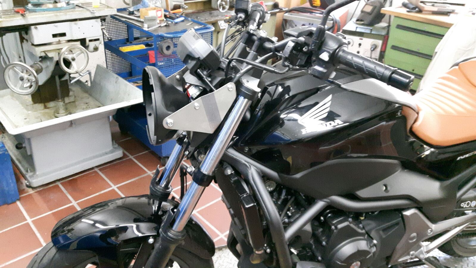 Die Halterungen werden noch verfeinert, mit Blinkeraufnahmen versehen und schwarz Pulverbeschichtet. Dann kommt noch eine Abdeckung für die Elektrik und ein wenig Feintunig. Bis zum Saisonstart sollte meine S fertig sein. Habe zur Zeit leider nur unscharfe Handybilder.