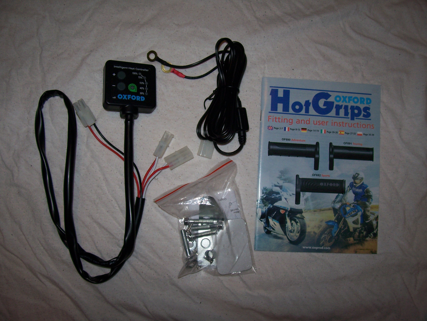 von meinen Oxford Premium-Heizgriffen habe ich noch den Schalter mit Anbaumaterial übrig. Die Teile sind neu/unverbaut und wurden nur zur Funktionskontrolle in Betrieb gesetzt.