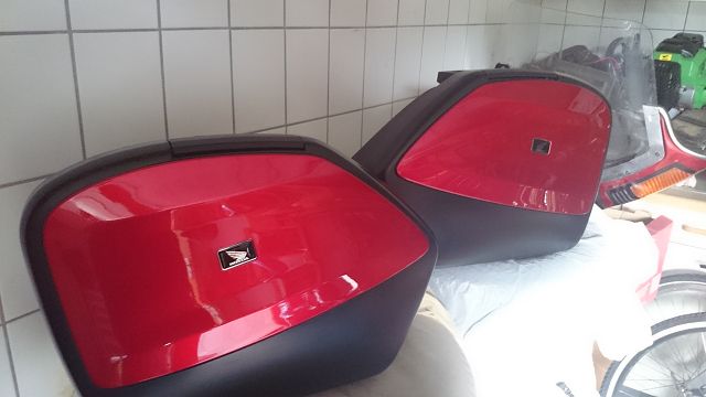 Biete für den Integra 750 org.Koffer in rot samt Träger und anbaumaterial,sowie das große org.Topcase alles im super zustand.Schlösser können vom