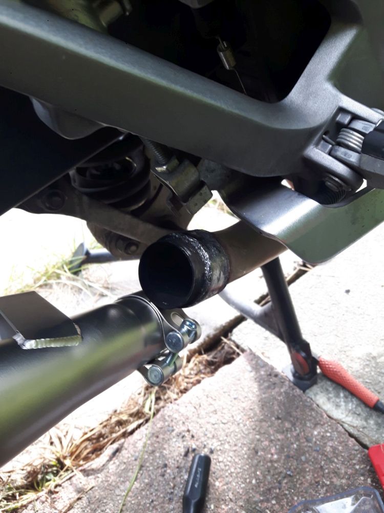 Am Krümmer ist bei mir noch der Dichtring vom Orginalauspuff dran. Der ist auch verdammt fest und das Zwischenstück vom Leo passt da definitiv nicht rüber.