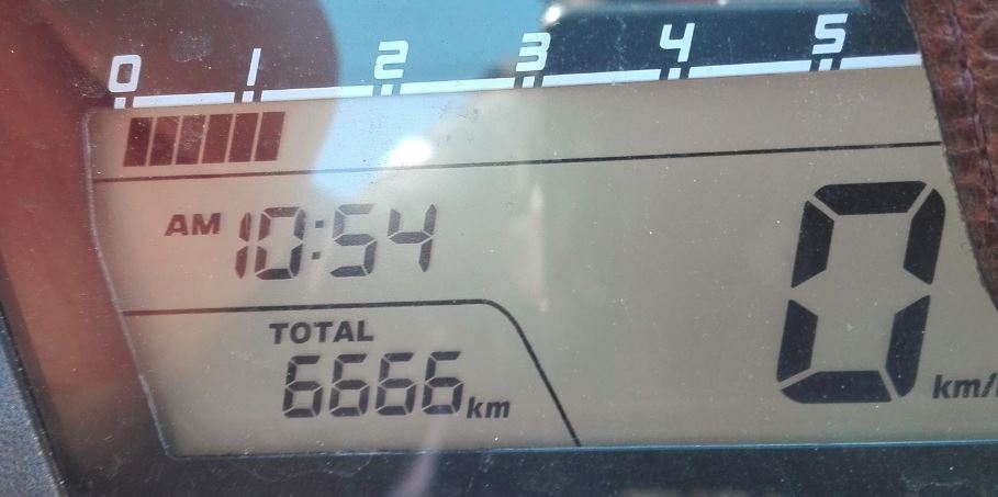 Ich hoffe, die bringt Glück und die nächsten 6666 gehen ähnlich problemlos. Seit der Tour vor einer Woche hat die CTX nämlich gelegenlich verdächtig aus dem Auspuff geraucht. Heute vor der Bebrarium-Fahrt habe ich deshalb das Öl kontrolliert und mußte Einiges nachfüllen - letzte Woche war noch voll.
