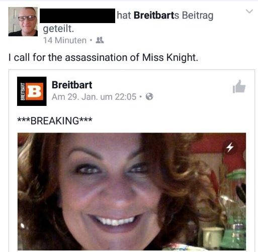 Ich war verwundert, wie offen hier jemand geschreibt, seine Frau wartet nur darauf, dass jemand den derzeitigen US Präsident erschießt. Man stelle sich vor das würde jemand über eine Person aus dem anderen politischen Lager schreiben. Undenkbar! Aber es zeigt einmal mehr wie mit zweierlei Maß gemessen wird.