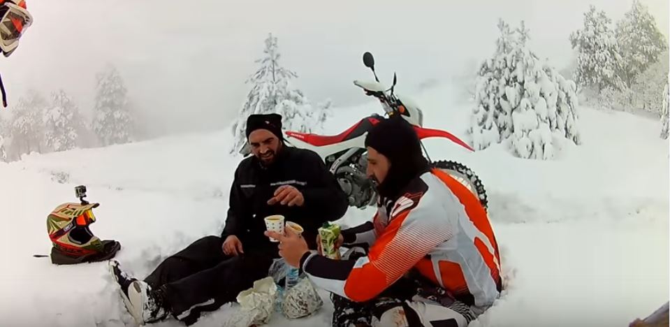 Es gibt noch andere, die Spaß im Schnee haben. Diese beiden in der Türkei nehmen's leicht und machen das beste draus.