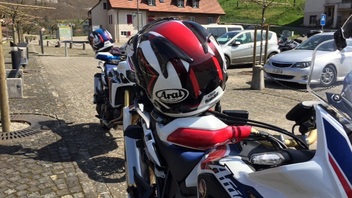 Einige erinnern sich vielleicht daran, dass mein Mann und ich unsere NC's gegen zwei Africa Twin's eingetauscht haben. Seit März haben wir schon einige Touren unternommen und nach jetzt 12500 km kann ich sagen, sie ist mir wirklich ans Herz gewachsen. Einfach ein tolles Motorrad. Was mir nicht gefiel, waren die Handprotektoren. Das heißt, die Oberfläche des Materials ist sehr grossporig. Wenn sich der normale Straßenstaub rauflegt, bekommt man das kaum sauber. Deswegen ist mein Mann auf die Idee gekommen diese lackieren zu lassen. Aber einfach nur weiß wäre ja langweilig. Da wir alles was wir gleich haben in rot und blau markieren, haben wir das auch hier gemacht. Blau für mich und rot für meinen Mann. Und das ist das Ergebnis.