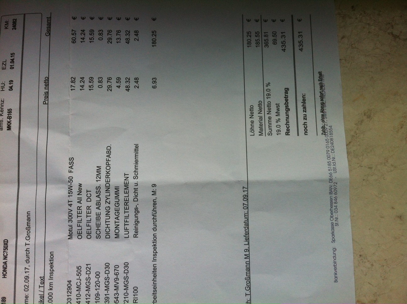anbei meine Rechnung über € 435,31 für die 24 tkm-Wartung,