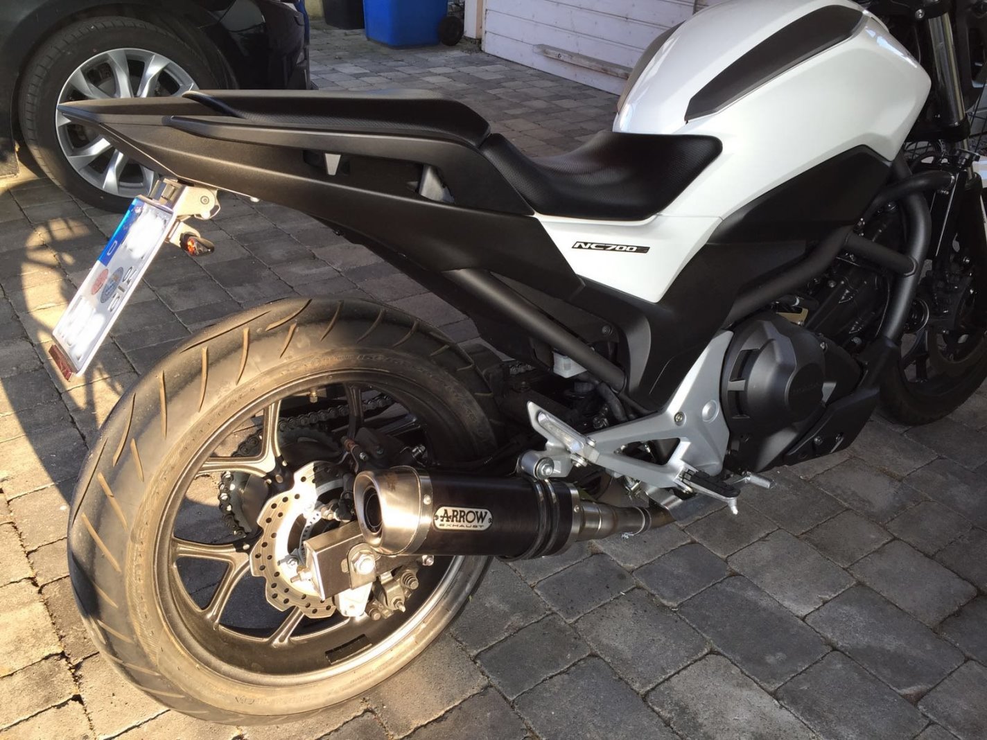 Kurze Technikdiskussion mit meinem Mann, Erklärungen über Automatik, Doppelkupplungsgetriebe, Inspektionsintervalle, dann das Angebot, er hätte noch einen Vorführer NC700S ohne Zulassung mit 350 km auf der Uhr. Müsste nur die 6 cm runter, was kein Problem wäre. Meine DragStar ankaufen? Auch kein Problem. Da konnte ich einfach nicht mehr nein sagen.