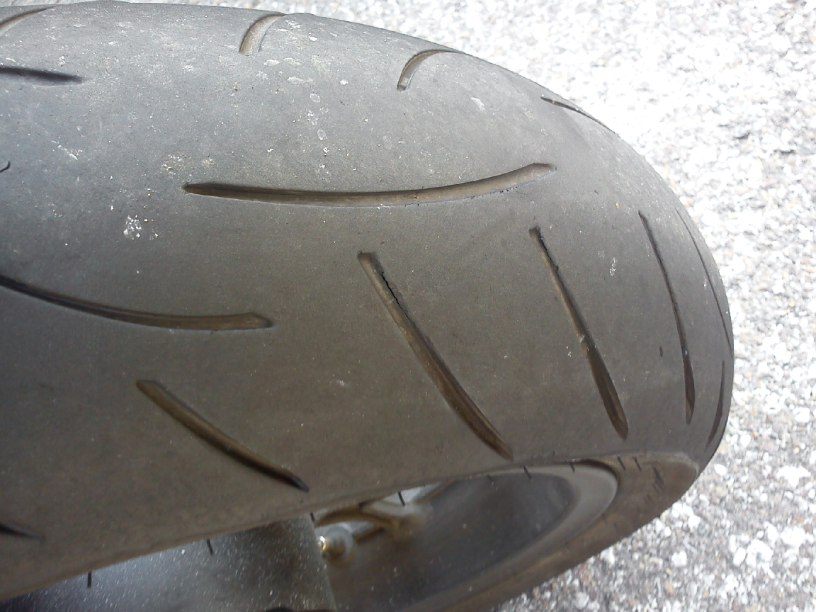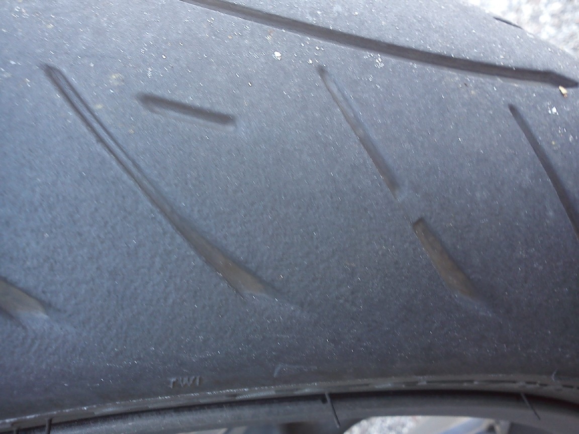 Am Vorderrad wirken ja bei grosser Schräglage meistens nur Seitenführungskräfte (die wenigsten von uns bremsen vorne wenn die Rasten schon schleifen)....am Hinterrad sieht das ganze schon anders aus, selbst wenn man nur leicht vom Gas geht bremst die Fuhre ja etwas...bei meinen Sägezähnen kann man aber klar erkennen, daß ich in Schräglage beschleunigt habe