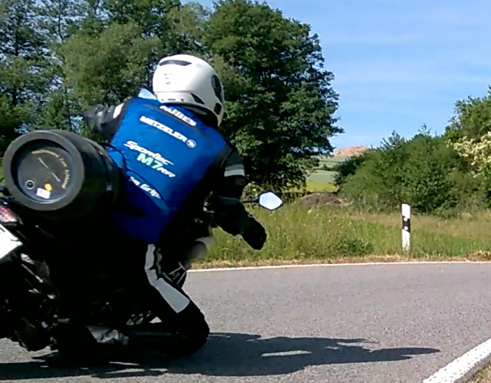 Du hast das nicht richtig beobachtet....ich bin auf dem Photo am Kurvenausgang....da geht man langsam wieder in die normale Sitzhaltung...wegen der Aerodynamic