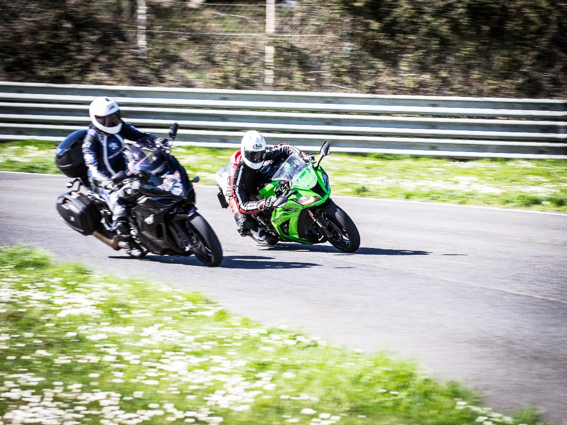 Ein wenig genervt war ich allerdings von Sebastian...wir mussten mit den Superbikes hinter dem Metzeler Mann her fahren und durften den nicht überholen. Der Typ hat schon am ersten Tag auf öffentlichen Straßen die Tour zum Horror gemacht. Langsam fahren konnte er nicht (dauernd die Füße auf dem Boden), überholen war auch nicht sein Ding...Kurven waren der reinste Horror...aber er hatte Knieschleifer. Ich nehme an da war der Bandschleifer am Werk...egal, war trotzdem schön. Zumindest habe ich das Vorurteil vom NC Fahrer als Schleicher revidieren können