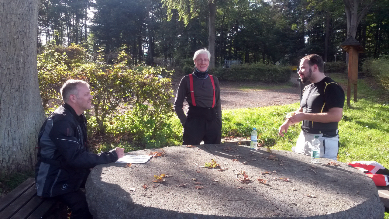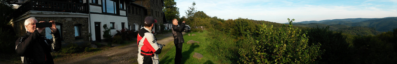 Um 11:00 geht's Richtung Kempenich und über Virneburg südlich weiter. Nach einem großen Bogen geht's dann Richtung Adenau, wo wir Mittagessen (ca. 13:30). Dann fahren wir die B257 wieder nach Süden über Kelberg und Nohn zurück nach Adenau um dann nach Kesseling zum Steinerberghaus zu fahren (Sehr große Aussicht aber auch sehr enge Haarnadelkurven). Danach wieder runter und über einige Umwege mit sehr vielen Kurven nach Schuld zum Haus Waldfrieden, wo wir dann den Tag ausklingen lassen können (Abendessen o.ä.).