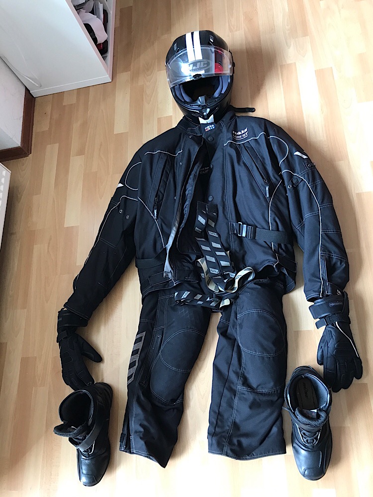 Ich sortiere gerade ein wenig und trenne mich von meiner Rukka Ausstattung aus Gore-Tex, einem HJC Helm, ein paar Schuhen und ein paar Winterhandschuhen. Aber keine Angst, ich fahre weiter, habe mich nur neu eingekleidet. Muss ja zum Gefährt passen