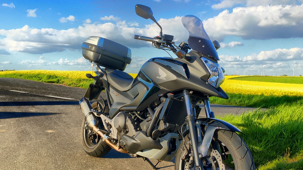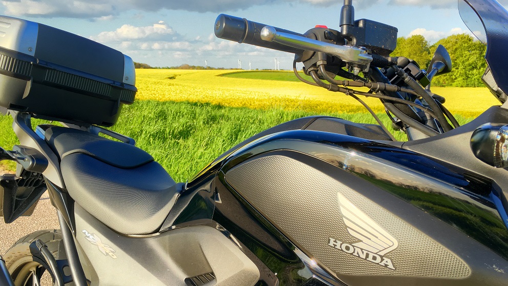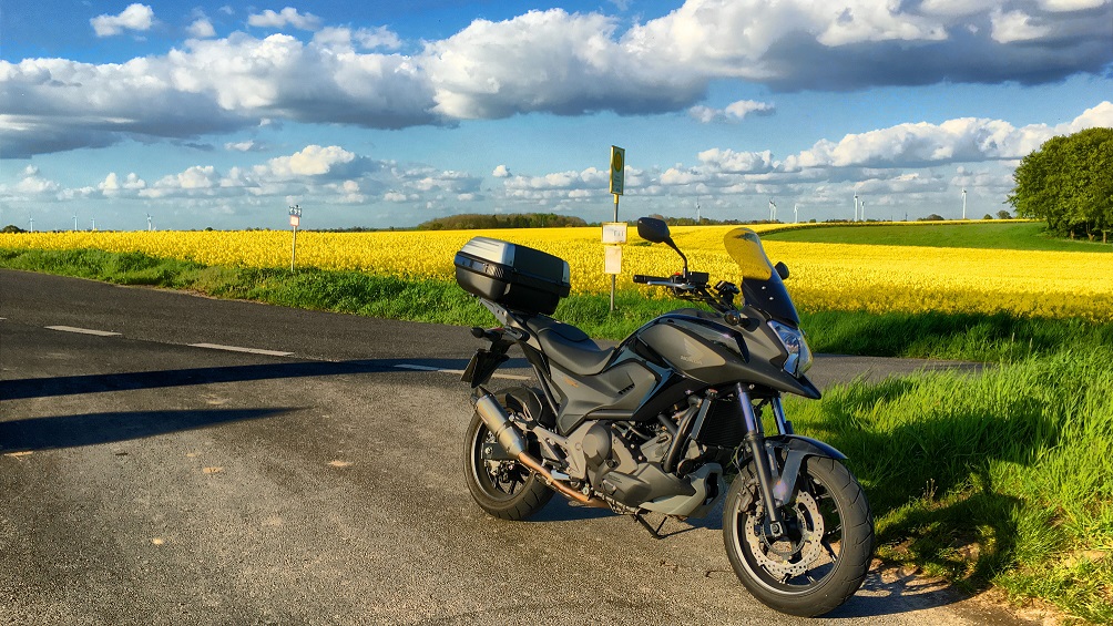 Das Foto verdeutlicht die Platzverhältnisse an meiner NC, bei dir müsste es aufgrund des gekürzten Seitenständers großzügiger aussehen.