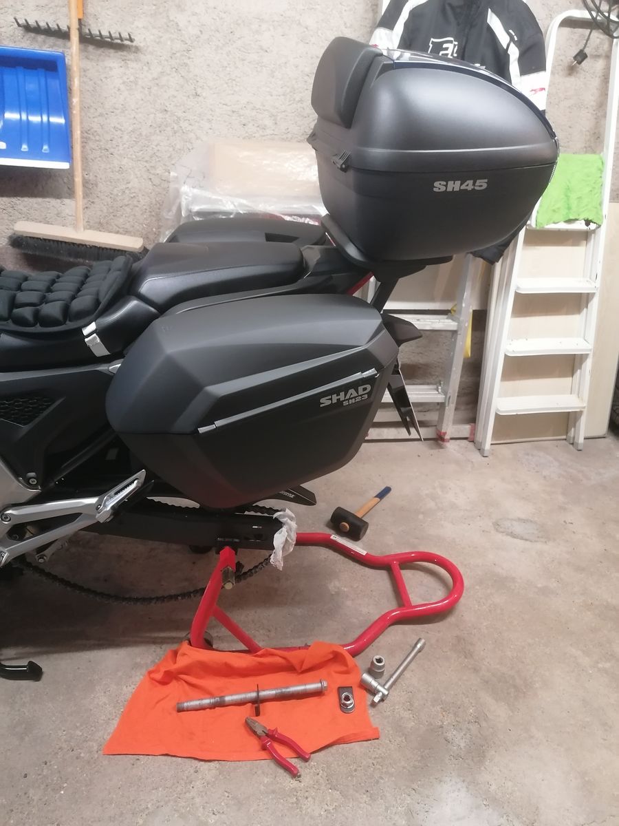 Und ich habe nur die Kotflügelverlängerung, hintere Radabdeckung, Hauptständer, Topcase, Windschild, anderer Lenker, andere Brems und Kupplungshebel verbaut 😉