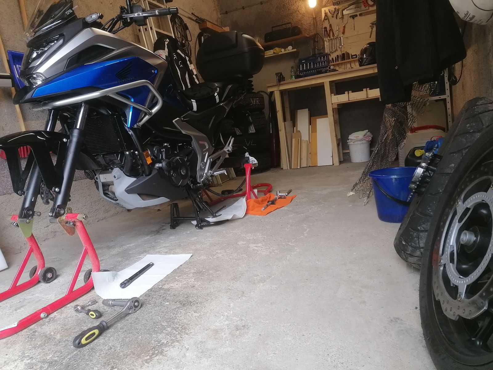 Und da ich zu einer völlig anderen Reifenmarke wechsle muß natürlich der Vordere auch runter.