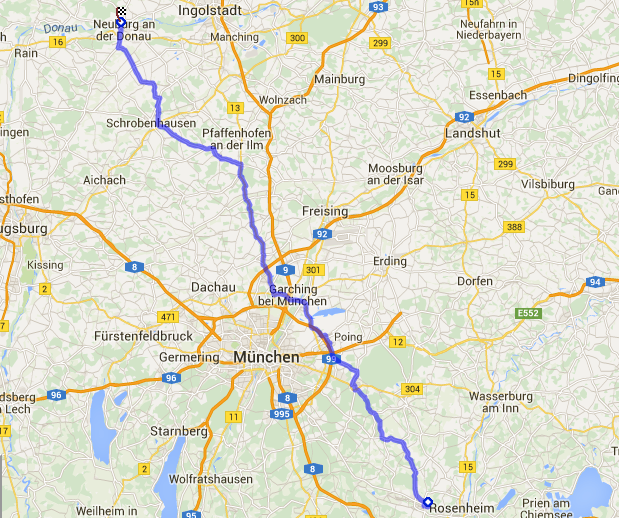 In Neuburg am Schloss steht schon Andy. Perfektes Timing. Ca. 141 km in knapp 2h. Ich Raser.