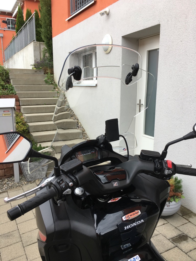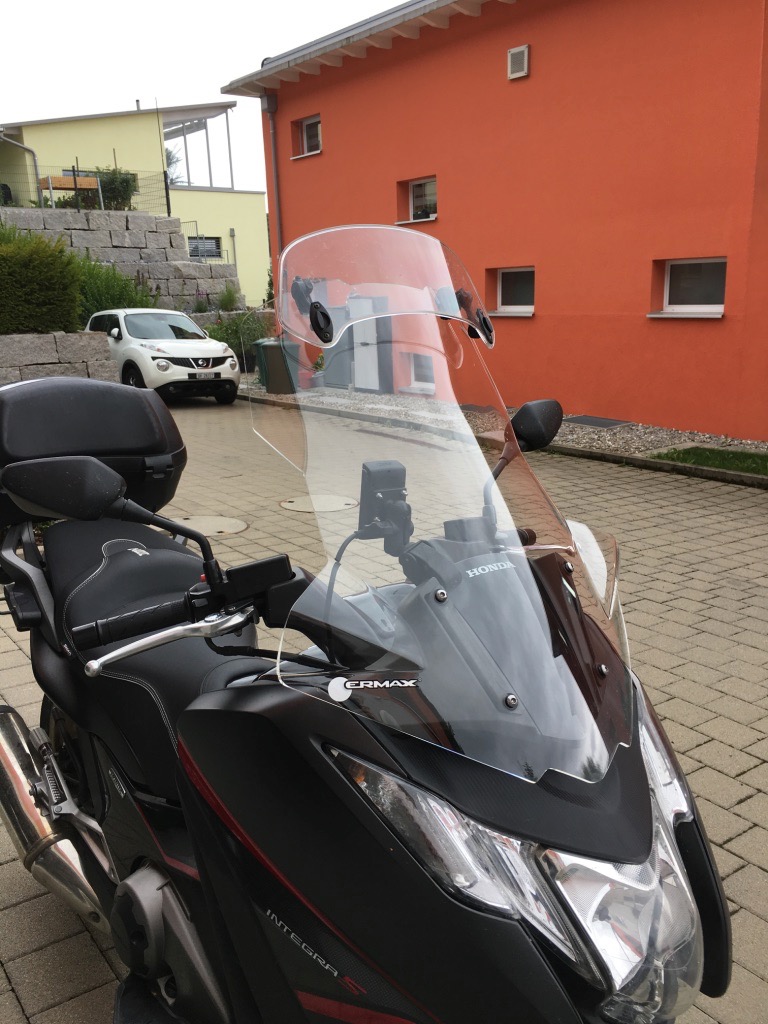 Was ist passiert: unterwegs gab es beim Überfahren eines Bahnüberganges einen Knall, und bei der nächsten Pause stelle ich fest, dass die Schraube bei der Gepäckbrücke abgebrochen war und verloren gegangen ist. Notbehelfsmässig musste ein Ast in der Nähe des Parkplatzes dran glauben, mit dem Sackmesser zurechtgeschnitzt, hält das Topcase so den Rest meiner Tour durch's Elsass durch. Ist aber nicht wirklich schön ![]()