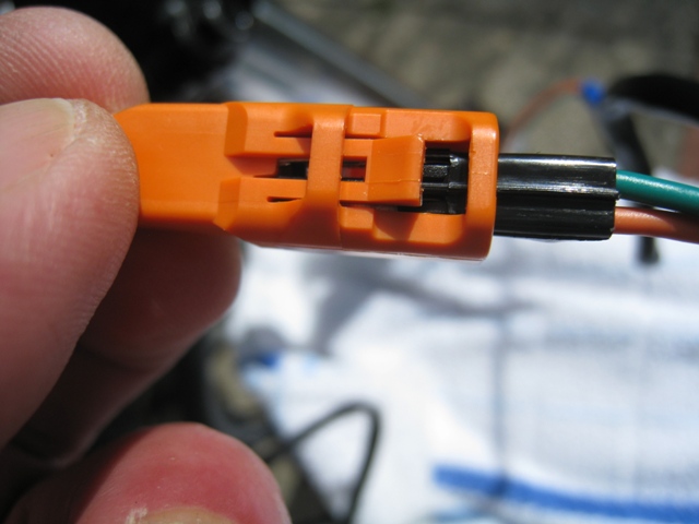 Leider kommt man bei den vorderen Blinkern nicht umhin von den Serienblinkern die dreipoligen Stecker zu kappen,(nur zweipolig belegt).