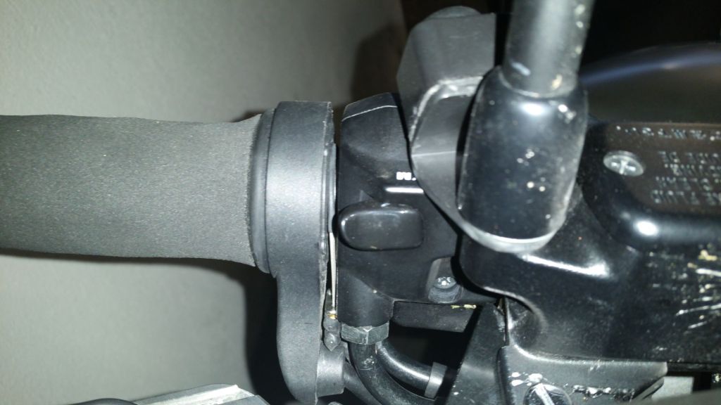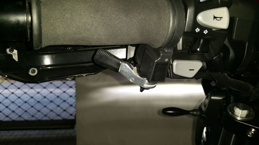 Tja sauber gebaut ja, funktionieren tuts auch nur leider nicht lange. Da der Gasgriff an der Stelle, an der der Feststellhebel ansetzt, ne Kante hat ist nach ein paar mal der Schrumpfschlauch durch. Was anderes hab ich nicht gefunden, jedenfalls nicht in der Größe/Kleine und Stärke die ich bräuchte. Ich habs mit Klebefüße und Dämpfer für Schränke probiert, aber die gibts in der Größe/Dicke nur in Rund. Zum einen kleben sie dann nicht richtig und durch die Linsenform ist die Andruckfläche zu klein.