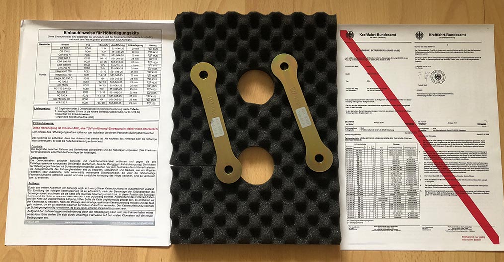 Ich biete einen unbenutzten Höherlegungssatz 25mm. Hatte den nie an meiner NC750X BJ.16 angeschraubt und werde es wohl