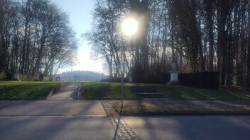 Nächster Halt in Nordkirchen, Blick gegen die Sonne auf das Schloss.