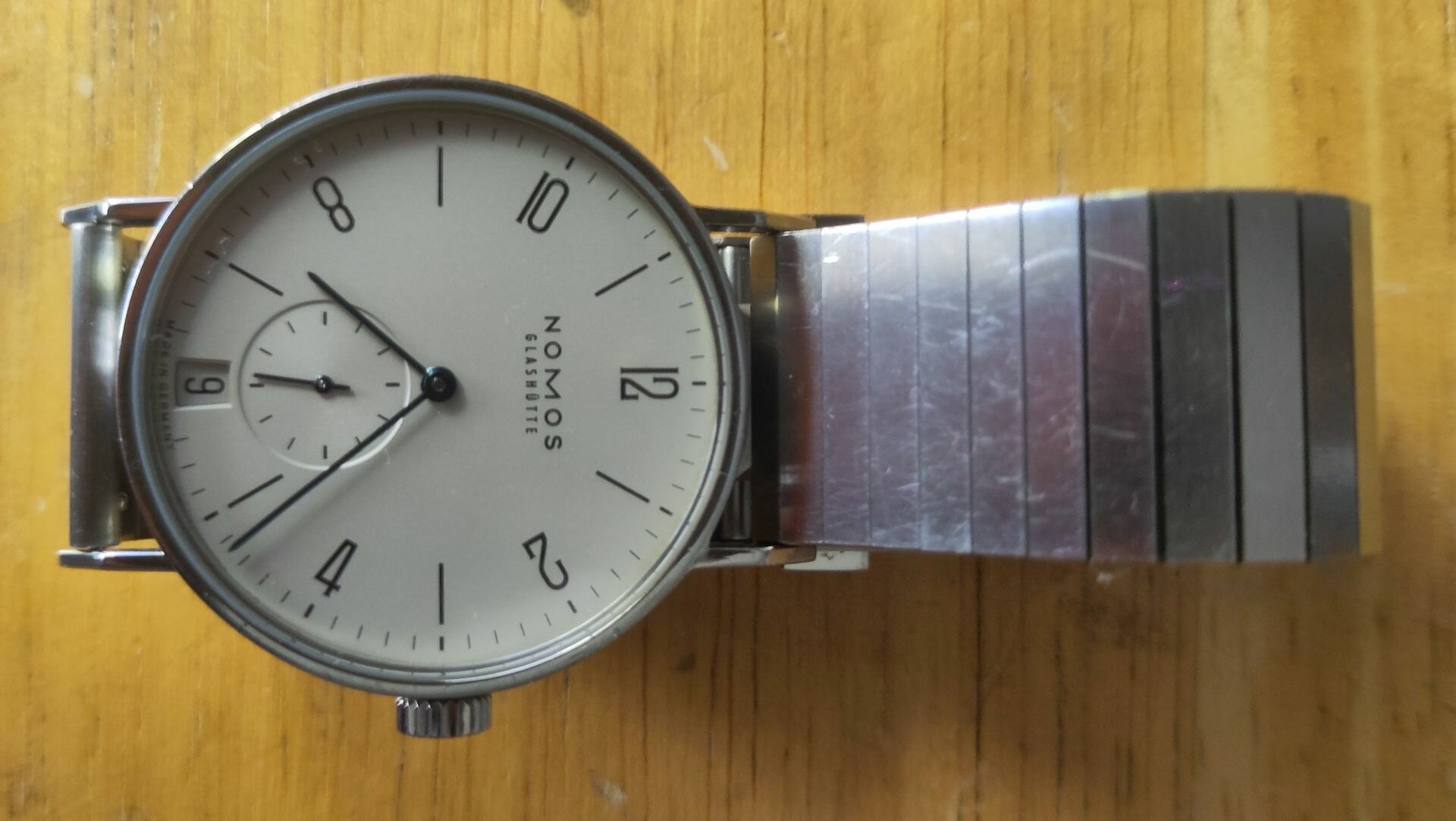 An der NOMOS liebe ich das klare, auf das wesentliche reduzierte Zifferblatt. Ein kurzer Blick genügt und ich weiß wie spät es ist. Das originale Lederarmband habe ich gegen ein Metallarmband, ebenfalls von NOMOS, getauscht.