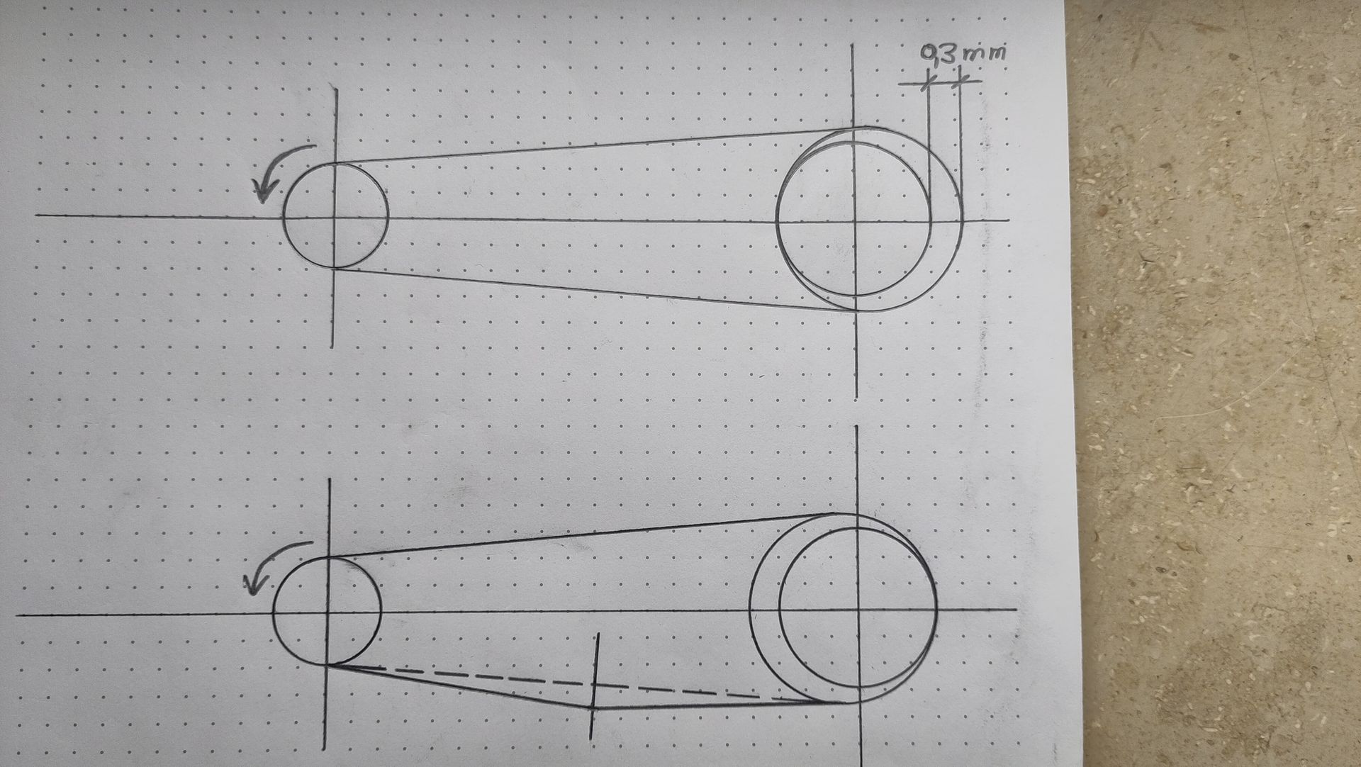 Der Berechnung der Kettenlänge von dir und Reinhard ( reinglas ) stimme ich zu, das dürfte passen. Auf dem folgenden Bild mein Versuch es optisch darzustellen ohne es auszurechnen.