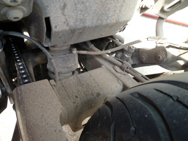 Am Samstag habe ich den Spritzschutz angebaut, die Kette gespannt und das Hinterrad ausgerichtet. Dies ging problemlos und zügig. Am Sonntag habe ich eine 110 km lange Proberunde gedreht, die Straßen waren feucht bis naß, das Motorrad frisch geputzt. Beste Voraussetzungen also. Nach der Fahrt habe ich das Motorrad im hinteren Bereich in Augenschein genommen. Das Nummernschild, die Rückleuchte, die Blinker, die Gepäckbrücke und der Bereich der hinteren Innenverkleidung (die zum Rücklichtwechseln abgebaut werden muß) sind nun sauber geblieben. Die davor liegende Innenverkleidung, das Federbein, der Hinterradschutz, der Kettenschutz und der Endtopf haben nach wie vor Dreck und Sand abbekommen, hier hat sich keine Besserung ergeben. Dies liegt wohl daran das in diesem, nicht mehr vom Spritzschutz abgedeckten Bereich, vom Hinterrad immer noch Wasser abgeschleudert wird. Aus meiner Sicht werte ich dieses Ergebnis aber dennoch als Erfolg weil das Heck sauber geblieben ist. Weitere Fahrten mit Sozia und bei Regen werden sich in der diesjährigen Saison ergeben, dann kann ich mehr berichten.