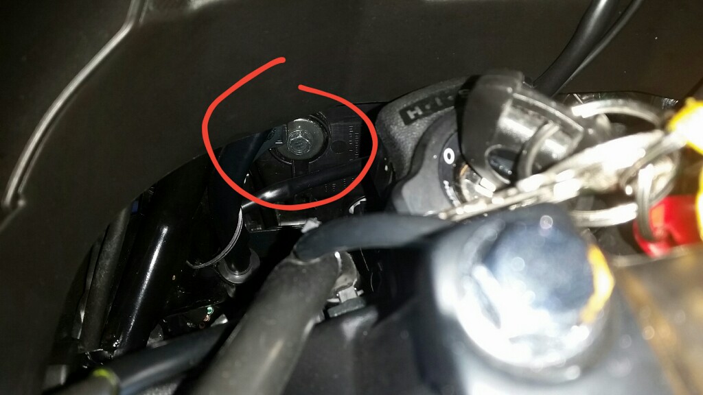 Also so wie ich das verstehe sollte das die schraube vom Bild sein an der man drehen soll. Man kann endweder von unten mit nen schraubendreher drehen oder von hinten mit einer 10er nuss.