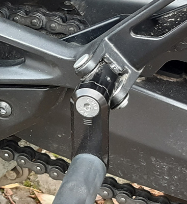 Diese ideale Stellung des Federbeins ist mit einer - und nur einer - ganz bestimmten Fahrzeughöhe verknüpft. Der leichte Fahrer federt nur wenig ein, also muß vielleicht, um die ideale Stellung des Federbeins zu erreichen, die Fahrzeughöhe heruntergestellt werden. Steigt dann der Beifahrer auf, geht das Fahrzeug in die Knie - die Fahrzeughöhe hat sich durch das Gewicht des Beifahrers verringert, sie ist jetzt zu klein, und das Federbein ist nicht mehr in seiner idealen Stellung. Abhilfe: Das Fahrzeug muß höher gestellt werden, bis das Federbein wieder seine ideale Stellung erreicht hat.