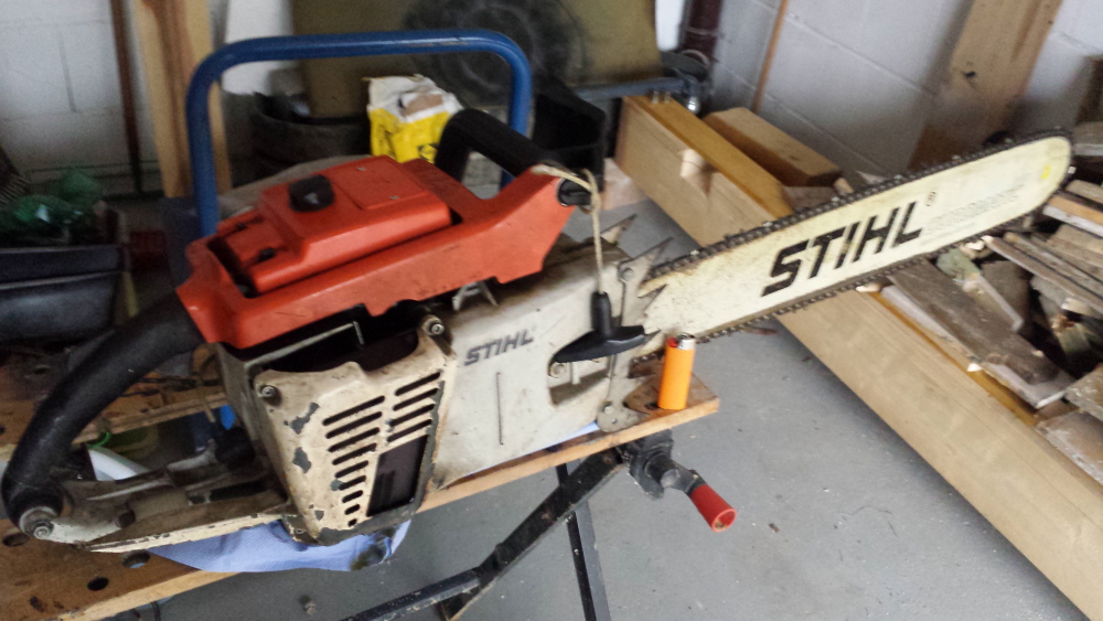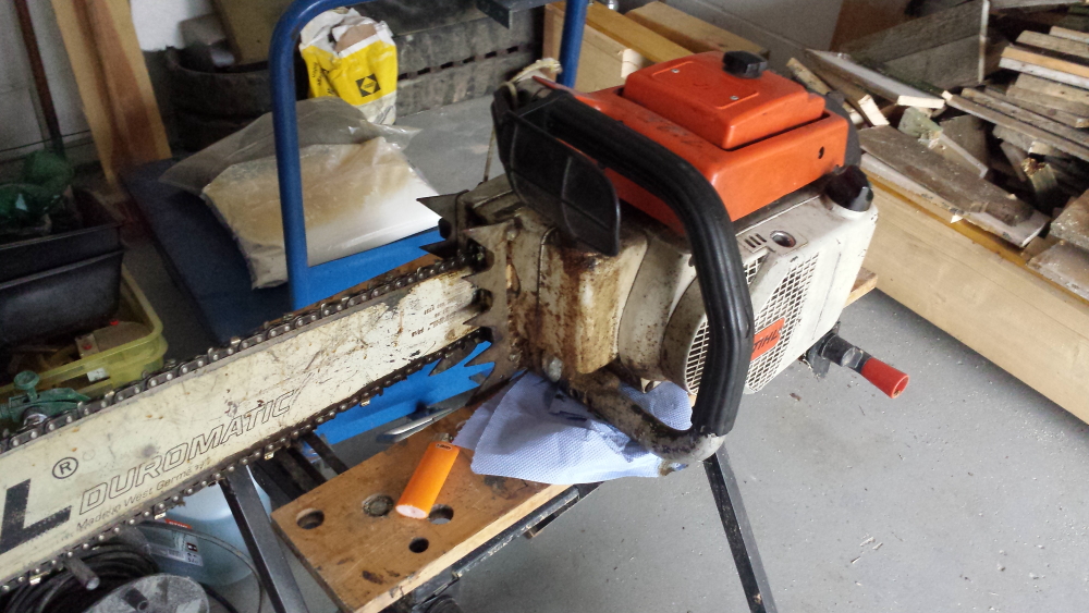 Das Kettenöl gibt über die Jahre mit den Holzspänen herrliche Verunreinigungen überall in und an der Kettensäge.