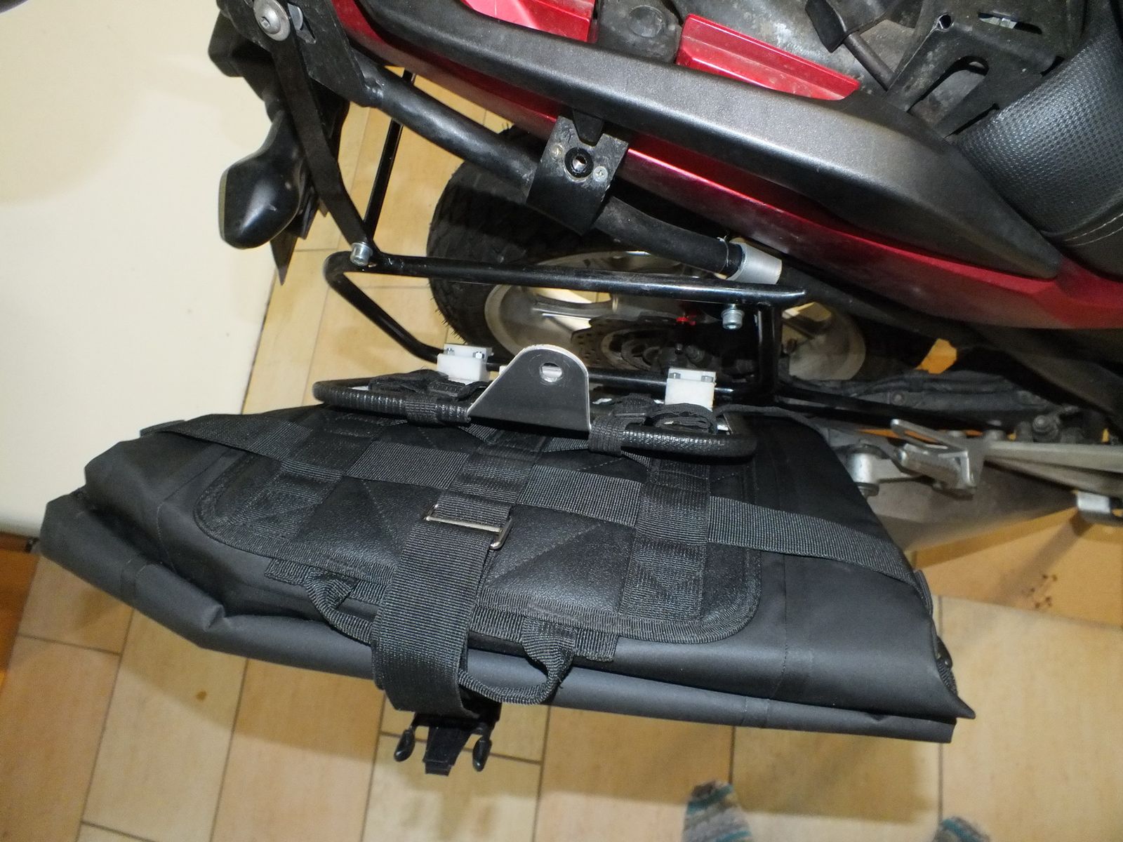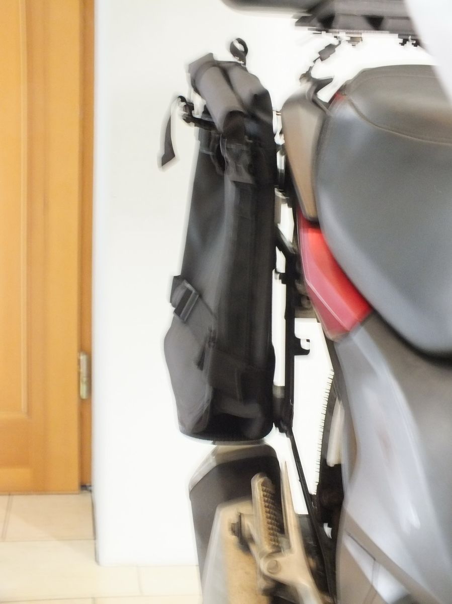 Das schöne an den Taschen ist, dass sie leer und zusammengezurrt nur ein paar cm auftragen, und wen man sie braucht, sind sie am Moped.