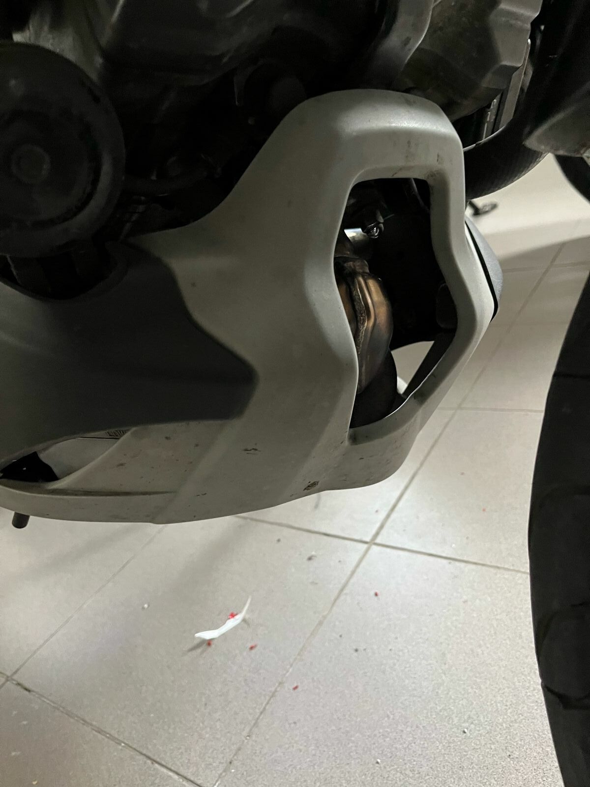 Ich plane jetzt das mittlere Kunststoffteil des Motorschutzes unterhalb des Kühlerschutzes schwarz zu lackieren (siehe Foto).