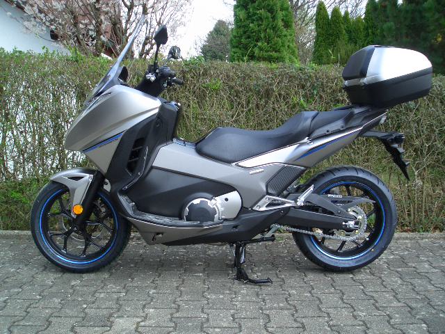 Wie kam es dazu? Nachdem ich mich seit der ersten Pressemitteilung seitens Honda (das war 2010) für das Thema NC bzw. DCT interessiert hatte und 2012 die ersten Modelle auf den Markt kamen, reifte der Wunsch in mir, irgendwann auch mal eine zu besitzen. Mein Händler hatte damals einen Vorführer mit 70 km auf dem Tacho und dem günstigsten Preis im Netz. Also Termin vereinbart und Probefahrt gemacht. War damals schon vom DCT angetan. War schon kurz davor den Kaufvertrag zu unterschreiben, jedoch die Farbkombination mit der auberginefarbenen Sitzbank hielt mich davon ab. Am nächsten Tag war sie verkauft. Gut so, denn es kam ja 2014 der 750er Motor. Wieder hatte mein Händler einen Vorführer, diesmal sogar in meiner Wunschfarbe Tricolor. Allerdings hatte ich nicht so recht die Motivation zu kaufen, da mein Sohn gerade den Motorradführerschein gemacht hatte und nun ja ein weiteres Bike in der Garage stand, welches ich ab und zu auch bewegen konnte. Also wieder nichts. Im Nachhinein für mich auch wieder o.k., da 2016 wiederum ein Update kam mit nun ausgereiftem DCT (lt. Tests). So, und nun musste es sein! Ein Grund mehr: Der Stufenführerschein meines Sohnes wurde erweitert und Honda bietet hierzu einen "Führerscheinzuschuss" in Höhe von 10% des Kaufpreises des Motorrades an. Also zugeschlagen und Ende Dezember 2016 noch bestellt. Letzte Woche beim Händler abgeholt und heute zugelassen.