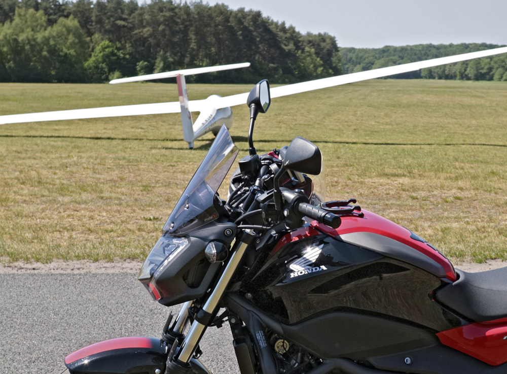 Die Tragearme der Topcasehalterung dienen als Abstandhalter. Passt alles bestens. Gegen das „Flattern“ bei schnellerer Fahrt kommen je Tasche zwei kleine Klettbänder zum Einsatz. Die vordere Öse der Tasche wird mit dem Fußrastenhalter und die hintere Öse mit dem Kennzeichenhalter verbunden. So sitzen die Taschen bombenfest (s. Fotos)