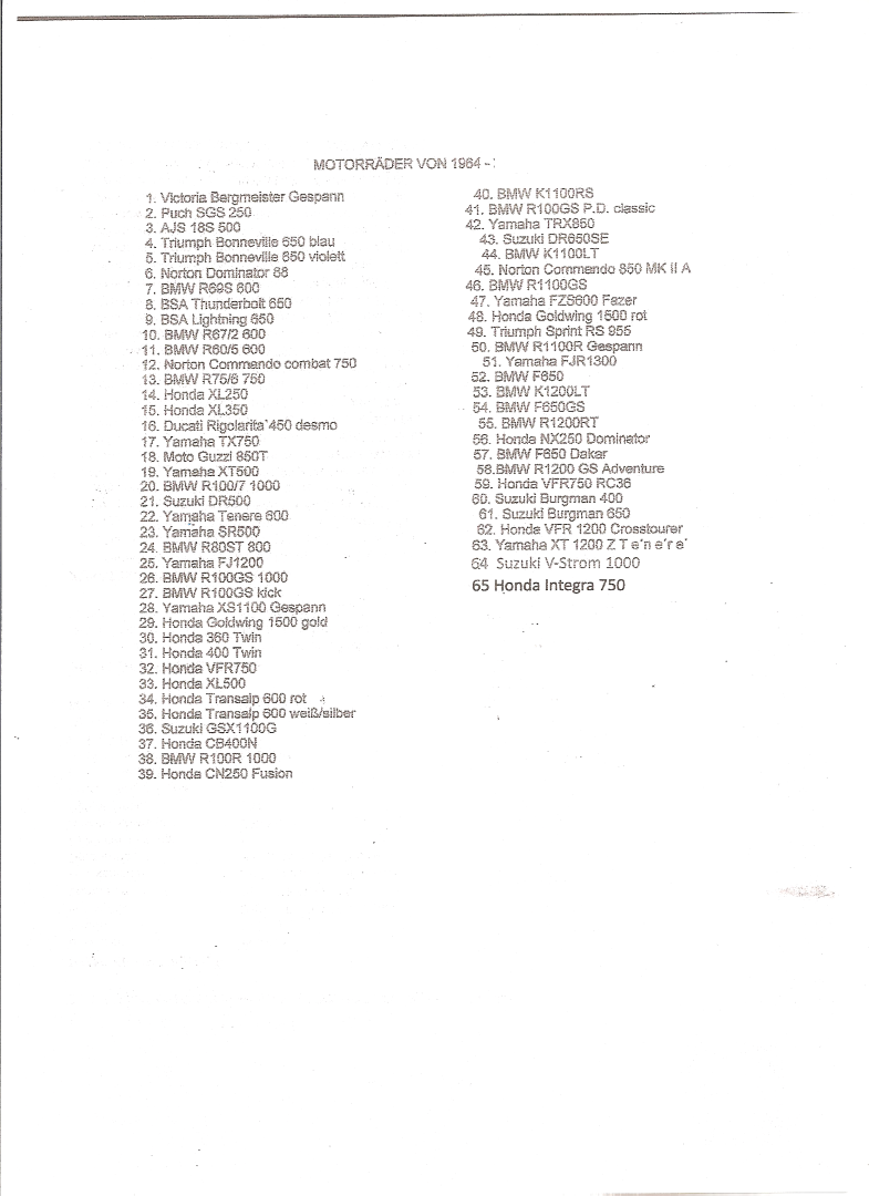 Z.Z. hab ich noch die Norton, die Integra und eine Suzi DR350, die ich auf der Liste vergessen hab.L G aus der Steiermark