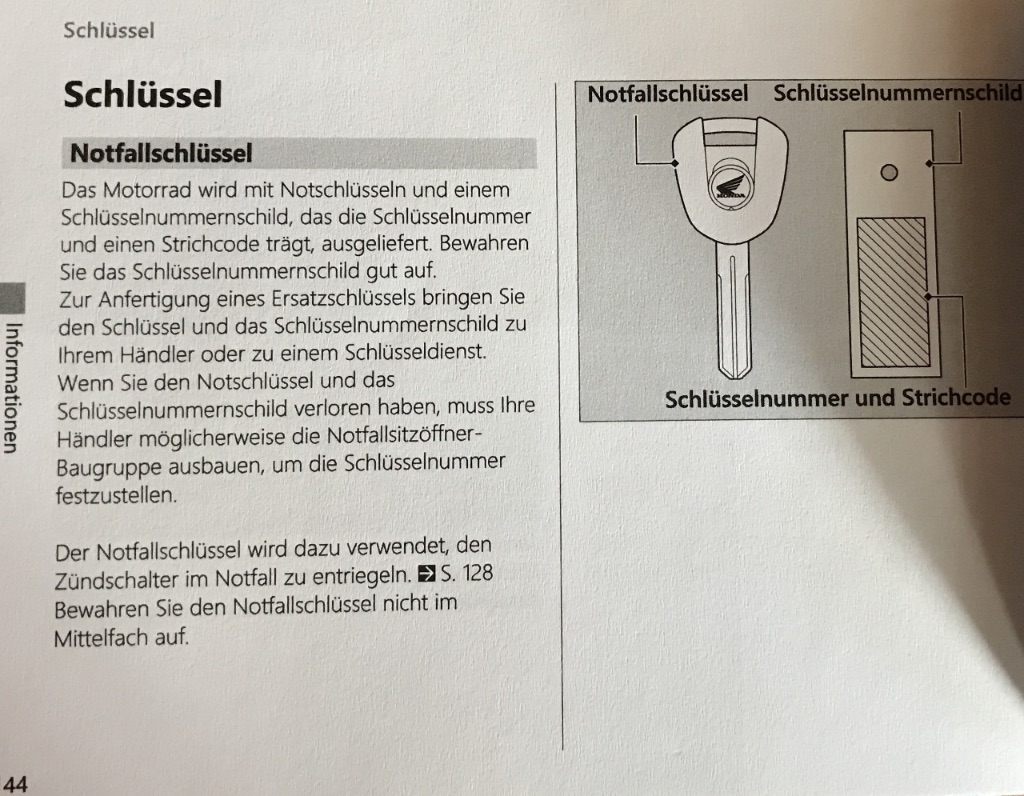 Mein Händler hat mir auch gesagt, dass das der Notfallschluessel ist. Den Rest habe ich gelesen.