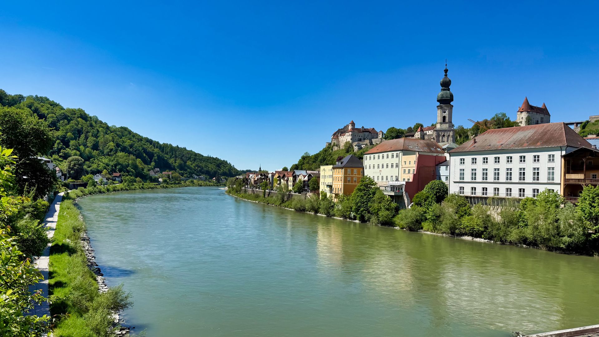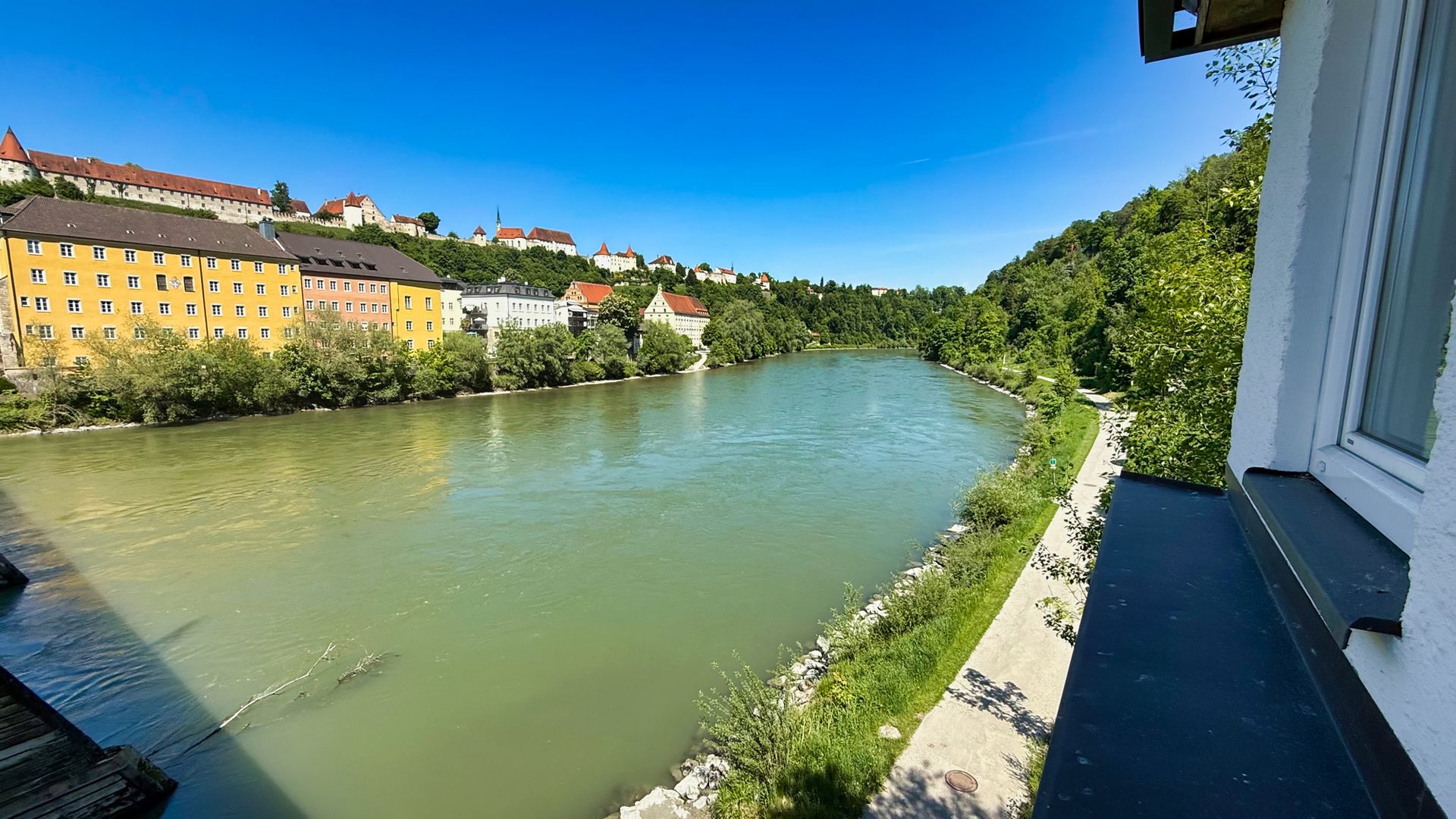 Bilder 4 u. 5 Burghausen von der österreichischen Seite über den Inn gesehen