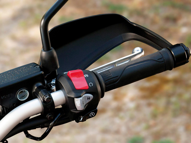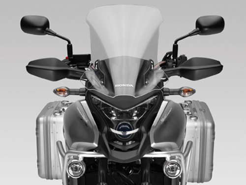 Die Crosstourer ist standard ausgerüstet mit Handprotectoren. Crosstourer, 1200cc V4 Motor, Gewicht von 260-280 kgf, eine Sitzhöhe von 86 cm was gut war für meine Länge von 1,90m. Aber die Preis war mehr als Doppelt von den NC700 und das riesige Motorrad war vielleicht zuviel für ein Einstieger nach mehr als 30 Jahren.