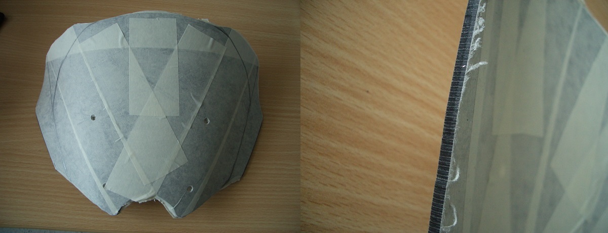 Also wird klar, die ausladenden Seitenflügel an der Scheibe müssen ab. Kurze Recherche im Internet wie man dass machen könnte. Da gibt’s Varianten mit Dremel, Laubsäge oder Bandsäge. Zum Glück habe ich einen netten Bekannten mit einer Bandsäge, da bleibt mir das Laubsägengefrickel erspart. Dann mit Kreppband abgeklebt, angezeichnet und mit einem Bierchen bewaffnet zum Bekannten.