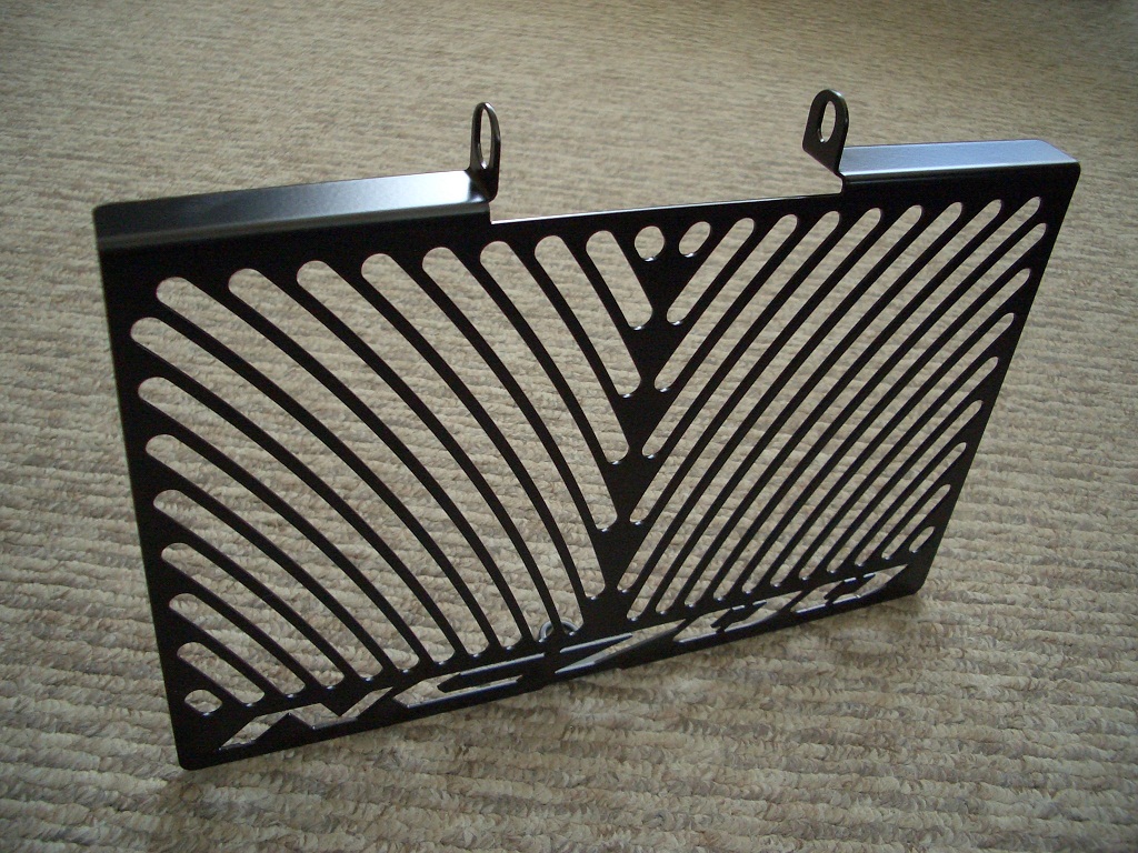 Dein Blech wird scheinbar anders befestigt! Meins hat unten eine Öse, so wie die Beiden oben. Nach entferntem Haltebügel unten wird das Gitter mit der Öse nur aufgesteckt und der Haltebügel wieder angebracht.
