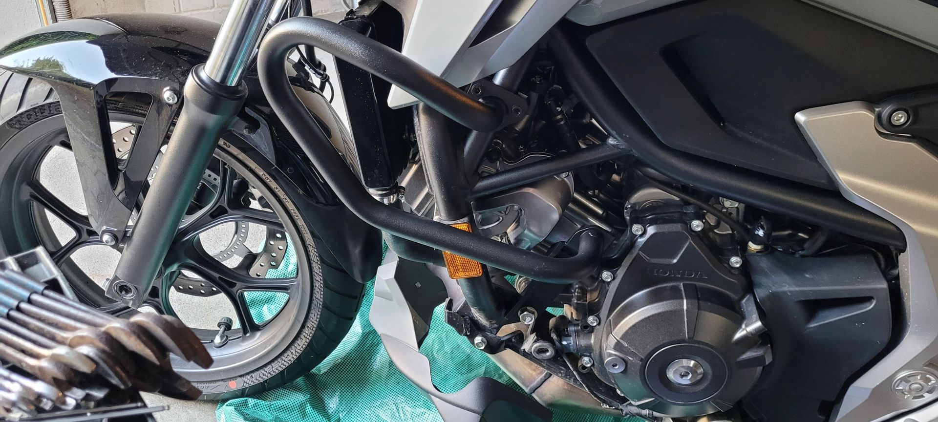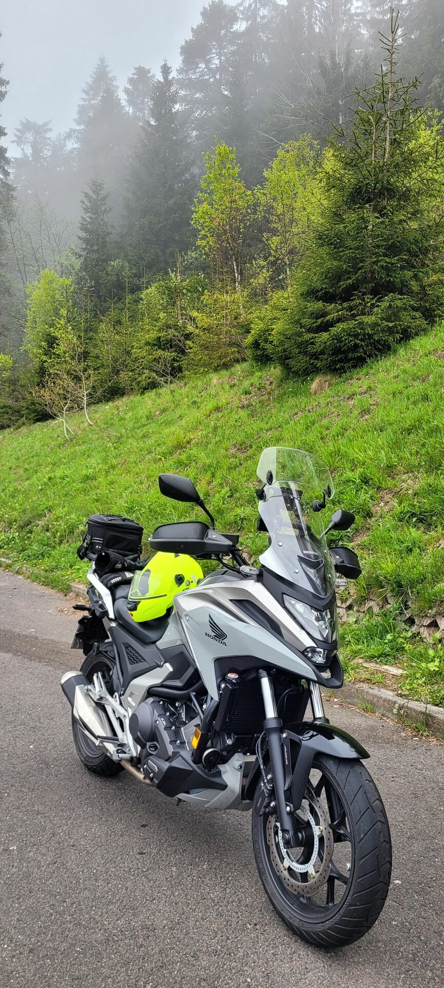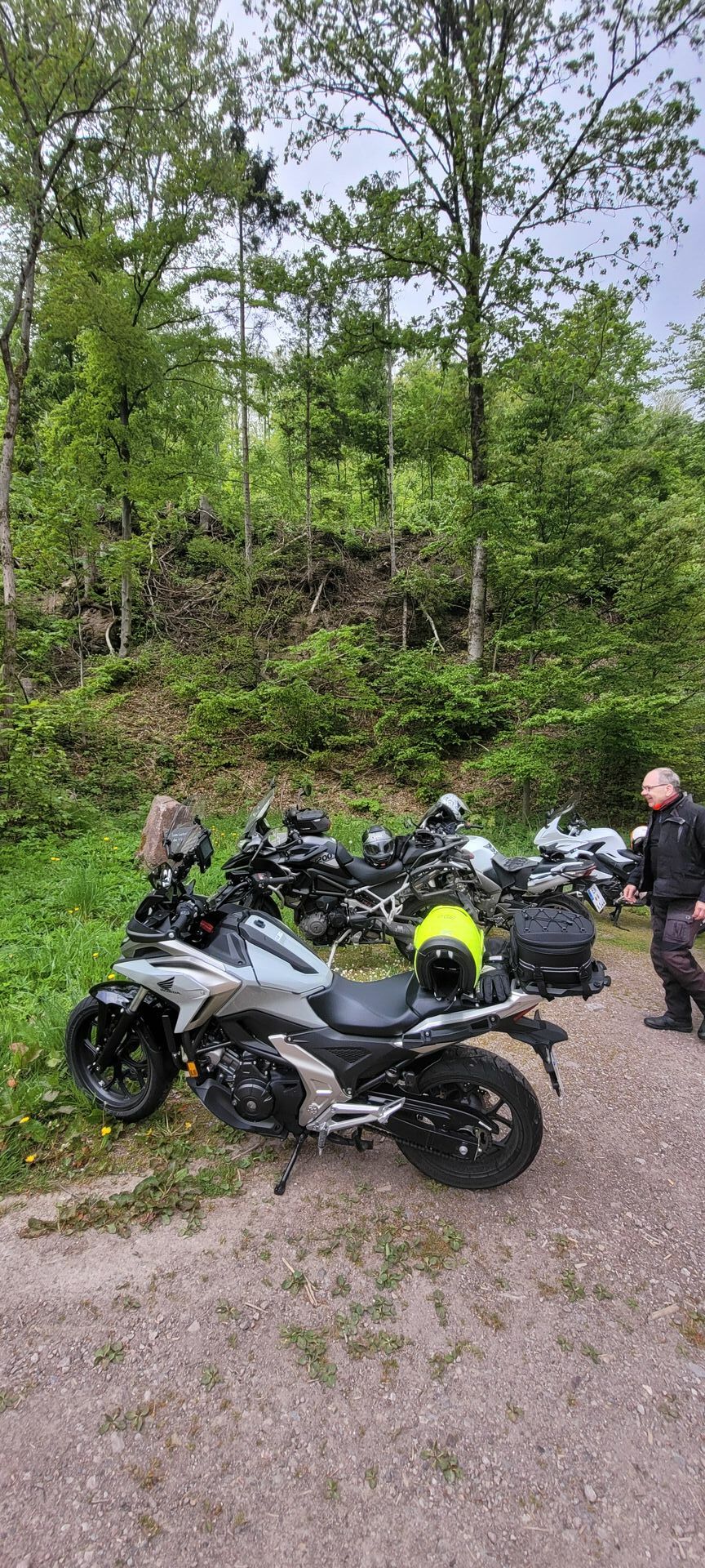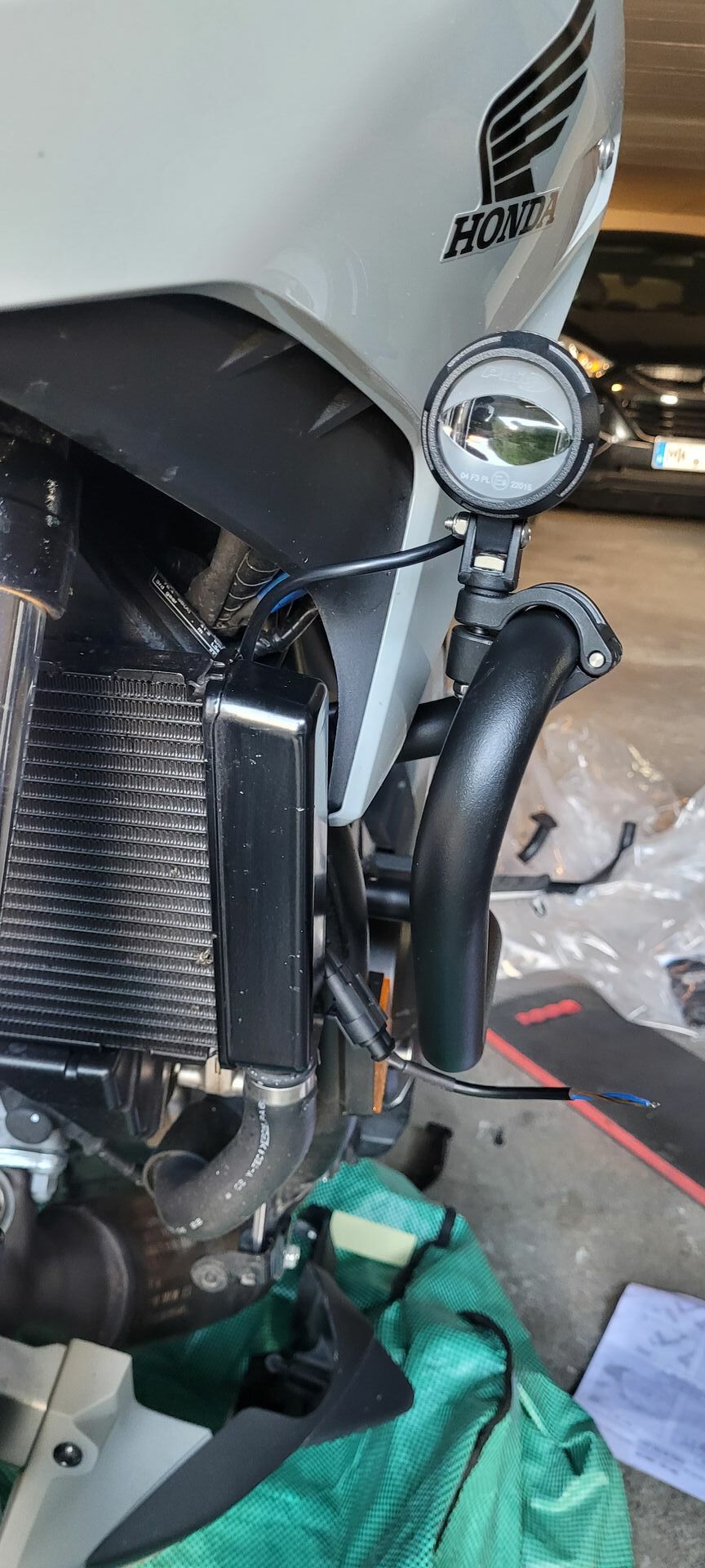 Anbei ein Bild meiner Lösung. Im Fahren komme ich nicht dran. Aber im Stand (z.B. rote Ampel, im Stau usw) komme ich ohne Probleme an den Kettenöler. Oberkörper etwas nach links drehen und schon passt es. Da ich aber eh nach jedem Tanken eine 1/4 Umdrehung weiterdrehe, ist das sowieso kein Problem.