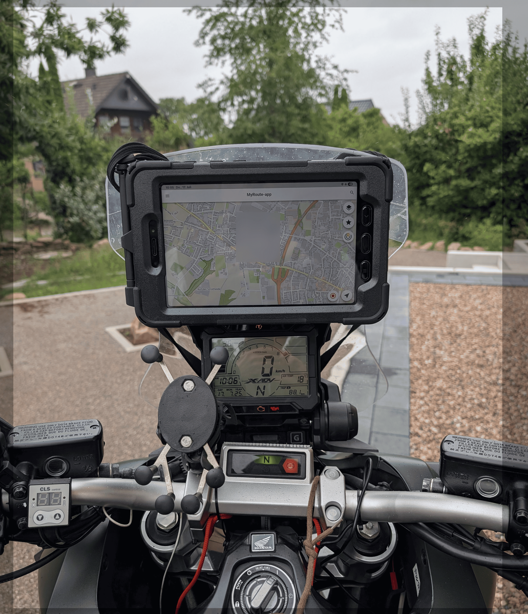 Es war mir wichtig, die Anzeige hoch genug zu positionieren, damit ich quasi ein Head-Up-Display habe. Zumal mir auch Informationen wie die erlaubte Geschwindigkeit angezeigt werden, die sich häufig ändern. Und nein, es behindert die Sicht überhaupt nicht.