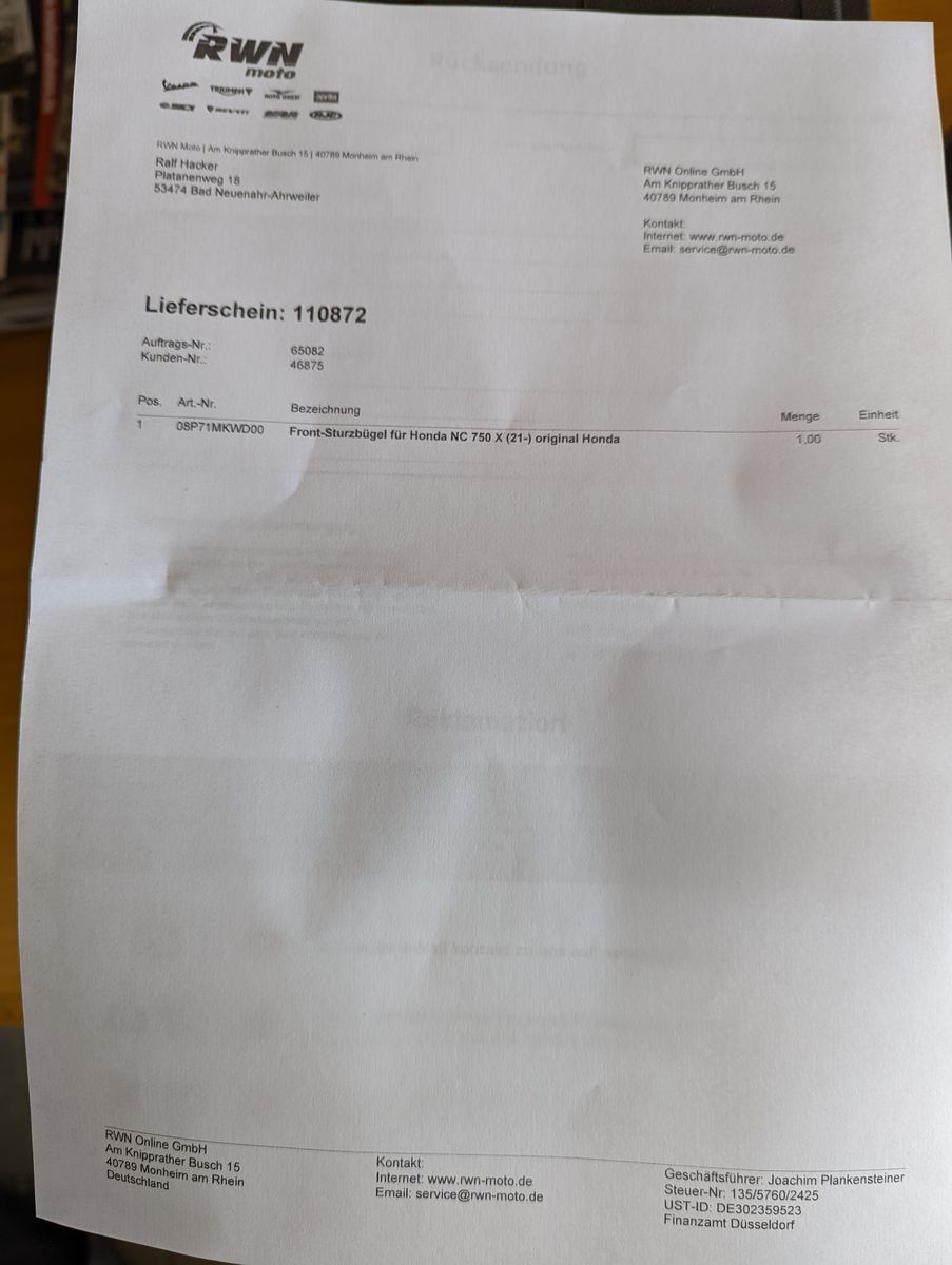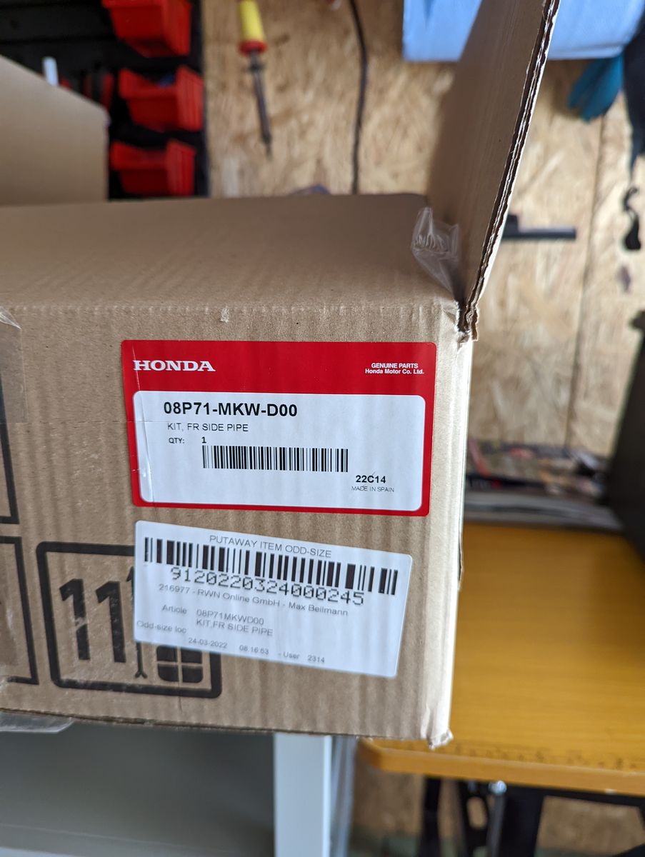Da bekanntlich der Erwerb von Zubehör für die RH09 eine Zeit lang zu Glücksspiel mutete, habe ich mir für meine Kleine bei zwei Firmen den Satz "Vorderes Seitenrohr" (notwendig für die originalen Honda Nebler) bestellt und...na? erhalten. Nun habe ich derer zwei. OK, könnte ich zurückgeben, aber ich glaube, der ein oder andere ist auch schon länger auf der Suche.