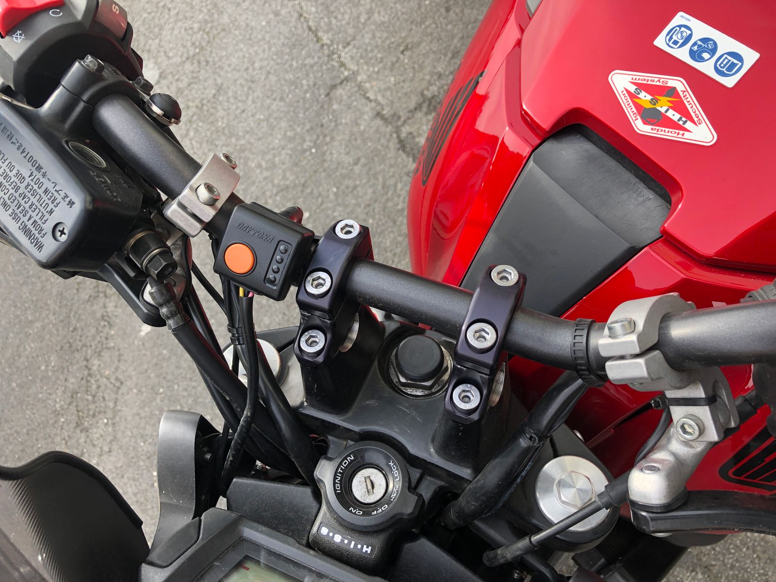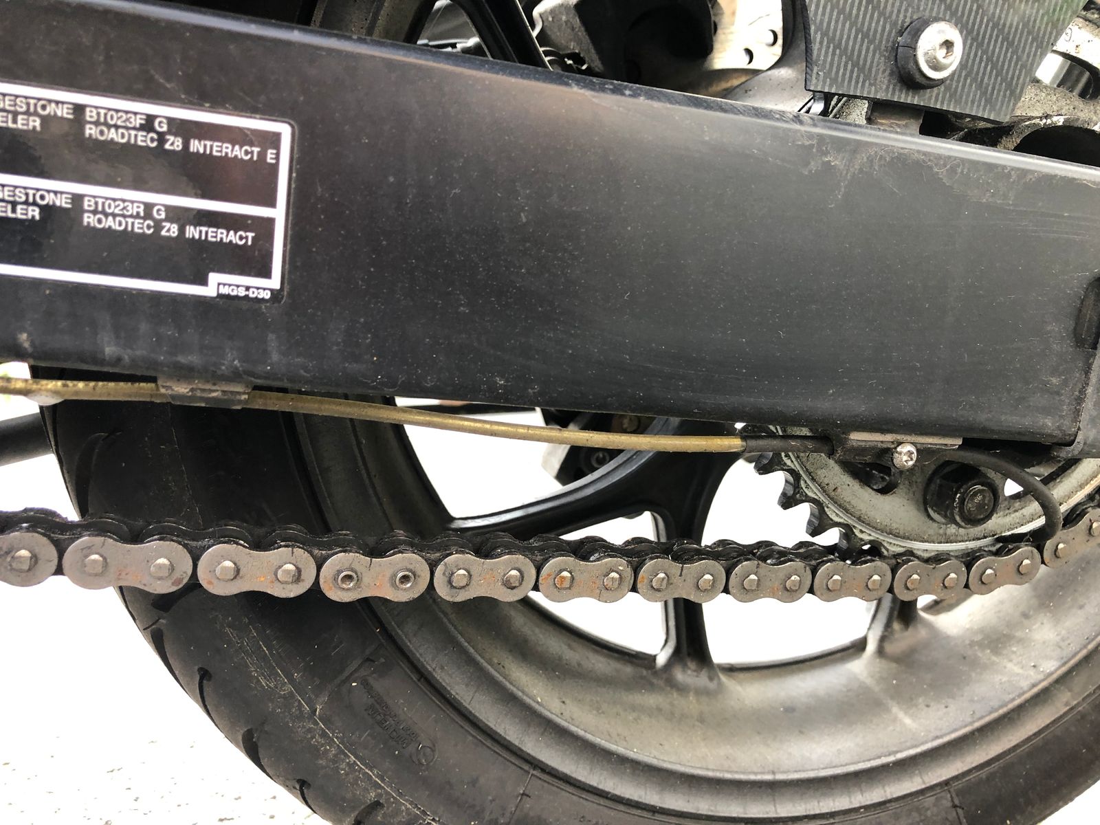 Topcase, Seitenkoffer, hohe Scheibe, Hauptständer, Daytona Heizgriffe, andere Hinterradabdeckung, Kobra Handschutz inkl. Blinker, Lenker-Riser, automatischer Kettenöler Mofessor.