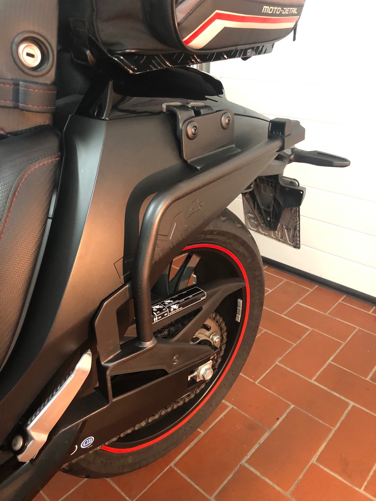 Letzt endlich habe ich mir eine eigene Lösung erdacht. Die Koffer von Shad SE23 und das dazugehörige Befestigungssystem war die eleganteste Lösung, jedoch gab es für die NM4 kein Befestigungsset, auch nach Rückfrage bei Shad nicht. Also habe ich mir den bestpassenden Halter für das Motorrad ausgesucht. Den Halter habe ich an allen Befestigungspunkten angepasst, abgetrennt und neu verschweißt, Winkel für die Rahmenbefestigungen unter der Sitzbank passend gebogen so das der Kofferträger optimal an der Verkleidung liegt, die Obere Verkleidung mit Aussparungen versehen und alles in org.Farbe lackiert. Ich finde das Ergebnis kann sich sehen lassen. Anbei ein paar Bilder. Ich hoffe meine Info konnte Dir weiter helfen. LG