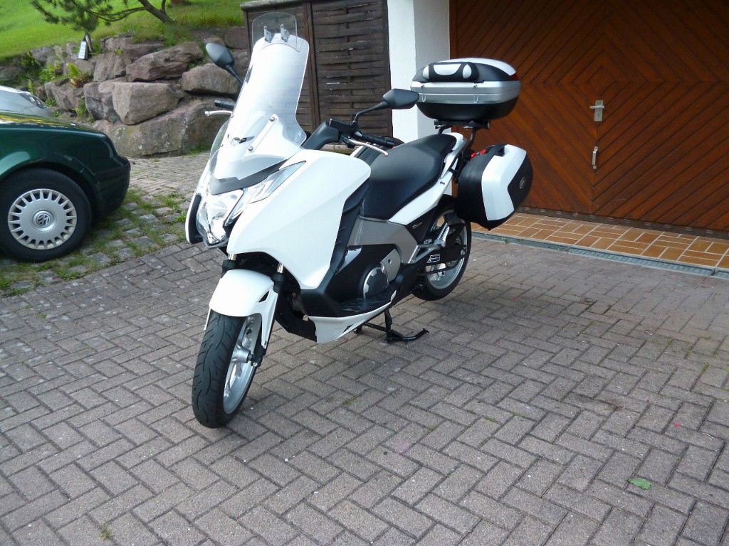 Weniger gelungen fand ich in diesem Test, das der getestet Integra zwar den Seitenkoffer Grundträger montiert hatte, aber kein Wort darüber verloren wurde, daß es überhaupt möglich ist, Seitenkoffer von Honda oder noch besser von Givi zu verbauen.