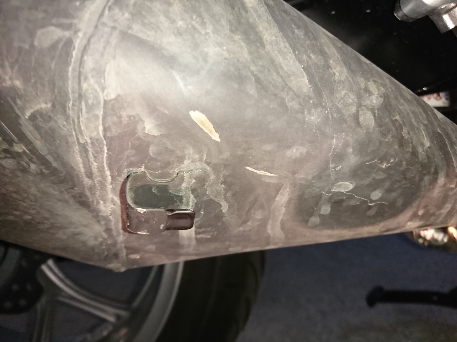 Habe mir eine gebrauchte 18er NC750X gekauft. Hat ein paar Schrammen, größtenteils nichts Schlimmes. Am Auspuff aber habe ich schon vor Kauf eine kleine Stelle gesehen, an dem der Lack etwas abgeschabt ist. Bei näherer Untersuchung, inkl. abschrauben des zusätzlichen Blechs, habe ich an einem Halter eine etwas größere Roststelle gesehen. Bilder sind angehängt.