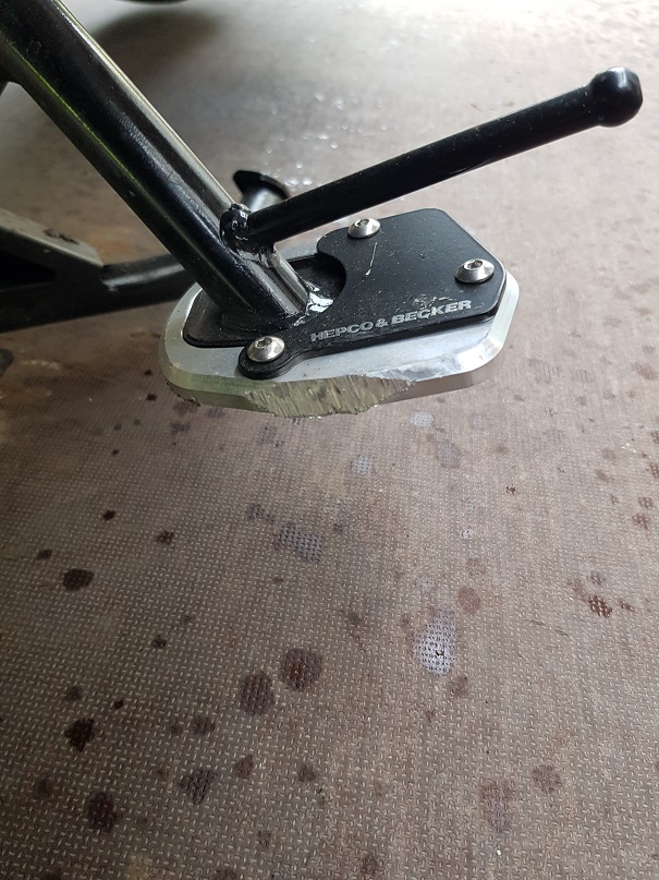 Bei größeren Schräglagen ist aber Vorsicht angesagt, da man dann mit der Seitenständerverbreiterung aufsitzt und die Gefahr des Aushebelns besteht.