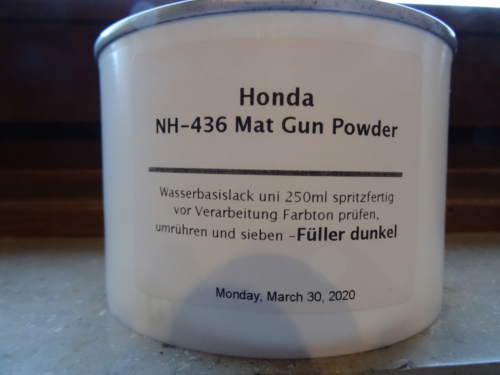 Lackrest, vormals 250 ml, die 4/2020 dazu verwendet wurden, die Koffer-Abdeckungen einer 2018er-Integra zu lackieren.