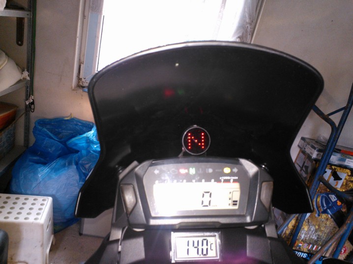der gang wird angezeigt so bald du geschaltet hast und die kupplung gelöst ist.